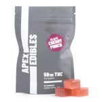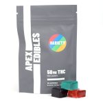 Apex Edibles come in 10 piece bags with 50mg THC per gummy for a total of 500mg THC per package. Enjoy Apex Edibles in Blue Raspberry, Fruit Punch, Grape, Kiwi, Orange flavors or try all at once with their variety pack!