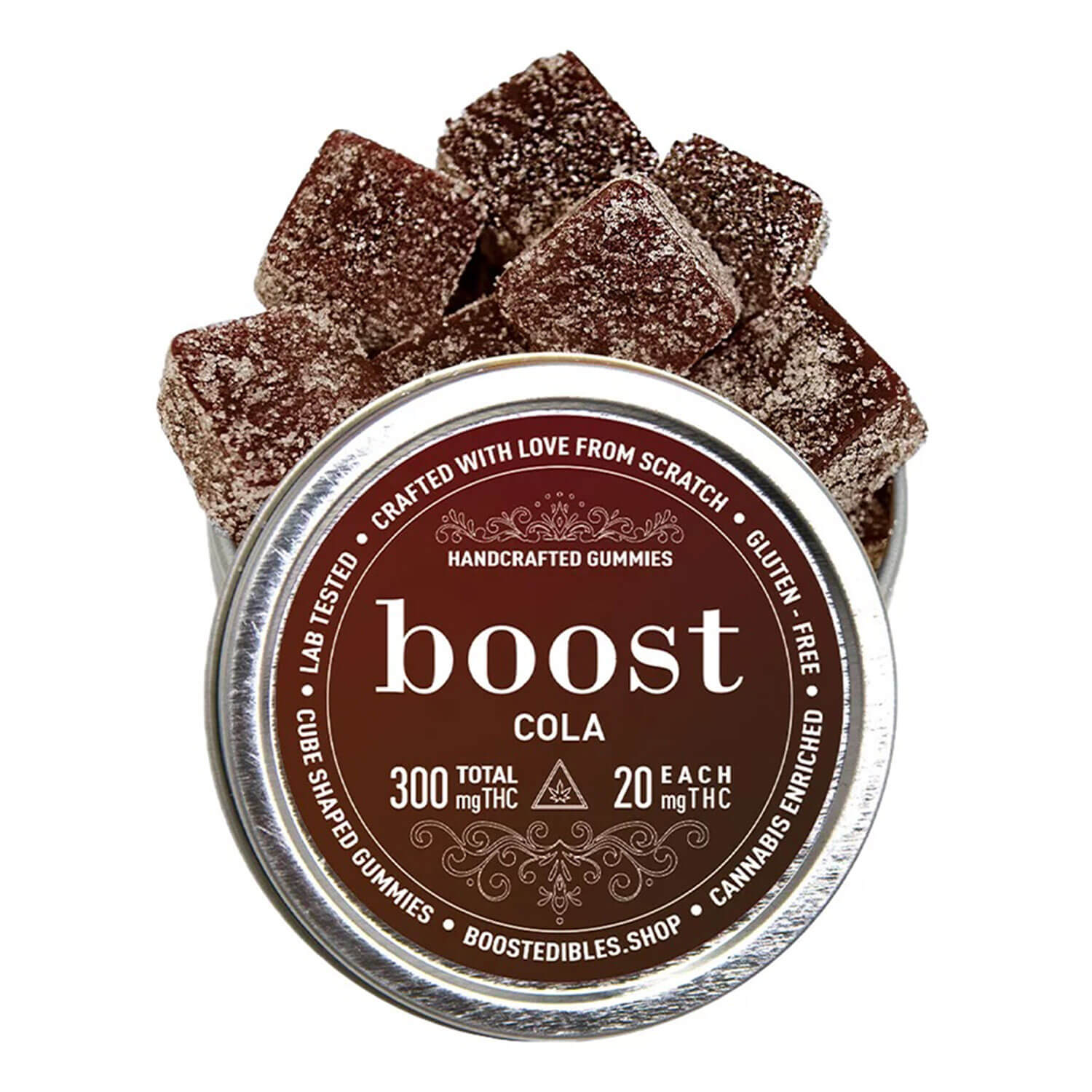 Cola 300mg THC Cubes by Boost Edibles are the tastiest, juiciest, naturally flavoured cannabis enriched gummies that’re made with care and with the best ingredients to deliver an excellent, consistent dosage in every bite.