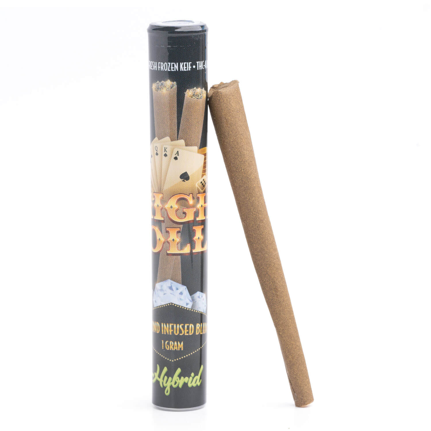 Diamond Infused Blunts by High Rolla is a hit! These 1-gram blunts are made from hemp wrap. They are made with Quad Flower, Fresh Frozen Kief, and THC-A Diamonds. Select from your choice of Indica, Sativa or Hybrid Blunts.