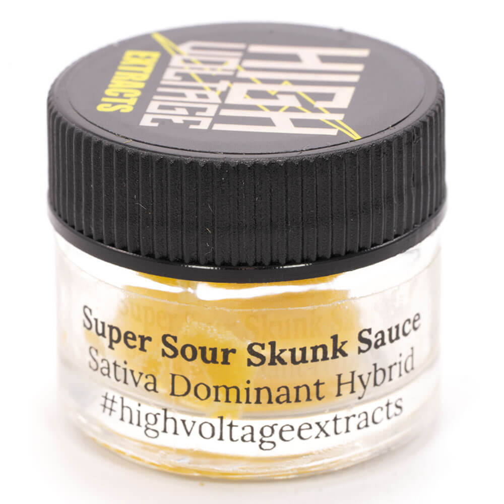 Super Sour Skunk Sauce by High Voltage Extracts is a sativa dominant hybrid strain with much uplifting effects to keep consumers in a good, creative mood which strays you away from stress or depression. A combination of sour citrus smells and earthy skunk flavours emit from this sauce once smoked. The sedative feeling slowly overcomes your body which while still feeling creative and in a good mood. This is the perfect time to chill on the couch and watch a movie.