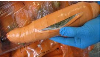 In Karottenform versiegeltes Paket, das für die Lieferung geruchslos war